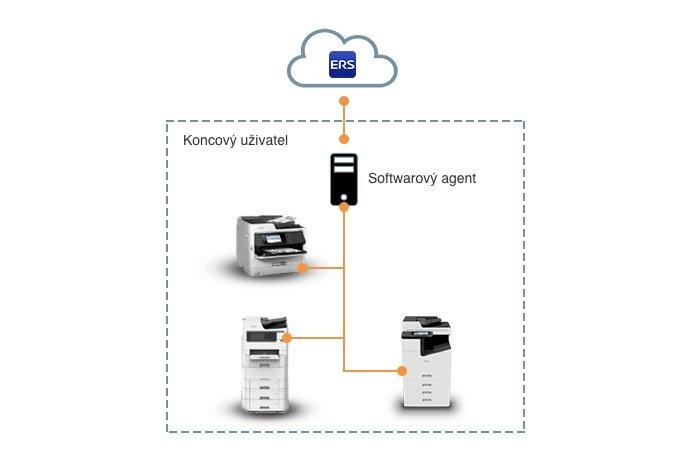 Agent běží na počítači v síti zákazníka pro centralizovanou komunikaci se službou Epson Remote Services.